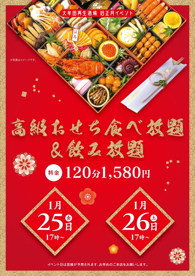 内容:高級おせちとお酒飲み放題イベント(2時間退店制)