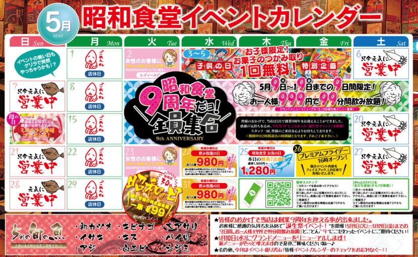 皆様のおかげで、昭和食堂は5月で9周年を迎えます! 感謝の気持ちを込め、今年は”9”にこだわった「誕生日イベン […]
